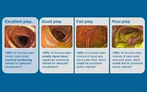 下面的图片从左到右依次代表肠道准备非常满意、满意、欠佳和差。